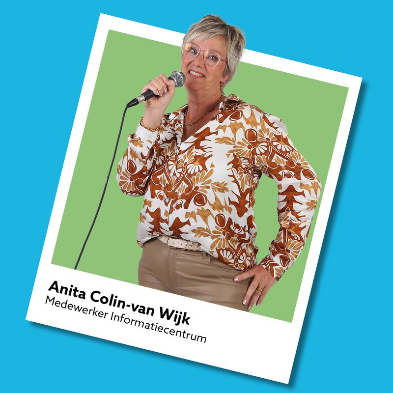 Als kind wilde Anita Colin-van Wijk zangeres worden. Als hobby zong ze jarenlang in een pop-rockkoor en treedt ze nog steeds op met de pop-rock vocal group NRG4U. Of ze nu haar lievelingsnummer Venus van Shocking Blue zingt of vragen van inwoners behandelt…Anita is de professionele stem van Molenlanden. Ze werkt met veel plezier bij het Informatiecentrum en beantwoordt samen met haar collega’s inkomende telefoontjes. ‘Ons doel is om zoveel mogelijk vragen direct te beantwoorden of inwoners warm door te verbinden met de juiste collega.’